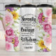 Este gráfico emocionante mostra uma adaptação da Oração da Serenidade, com "Serenidade", "Coragem" e "Sabedoria" elegantemente destacados. As palavras profundas são maravilhosamente moldadas por uma borda aquosa de rosas cor-de-rosa, girassóis amarelos brilhantes e margaridas rosa alegres, acentuadas com brilho dourado brilhante. Esta design inspiradora promove a aceitação, o crescimento e a orientação divina.