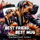 Um sanduíche digno, com expressão suave e sua língua levemente para fora, se situa pacificamente entre um belo arranjo de girassóis de tona quente e grandes roxas. As sutis impermeabilizantes no fundo adicionam um toque artístico e calmante a este delicado retrato canino.