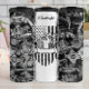 Este gráfico apresenta uma bandeira americana branca e negra impressionante, com uma seção branca central mostrando um fazer de mão como um sinal de paz enquanto segurava uma chave inglesa. Outras ferramentas como martelo, chave de fenda e chaves de fenda adicionais são integradas ao design. O fundo consiste em um conjunto caótico de várias peças e engrenagens metálicas, fornecendo uma estética industrial robusta. O efeito angustiante sobre a bandeira contribui para o tema vestido e trabalhador.