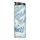 This is a charming and serene digital illustration that captures a moment of pure winter tranquility. The focus is a fluffy, happy polar bear cub resting comfortably in a soft, snowy landscape. The bear is depicted with a content, gently smiling expression, its large, kind eyes conveying a sense of peace and security.