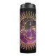Tumbler térmico impressionante apresenta sol dourado e cobertura lua sobre fundo violento celeste violento