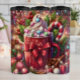 Esta ilustração festiva apresenta uma minuciosa caneca vermelha de cacau quente, revestida com chantilly e marshmallows coloridos. Uma bengala doce está viciada no lado, e a caneca é enfeitada com um grande arco vermelho. A cena acolhedora é rodeada por luzes cintilantes, ornamentos de férias e decorações festivas, criando um gráfico de férias quente e mágico.