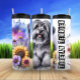 Garrafa Térmica Tibetano Terrier com pano de fundo floral