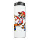 Esta ilustração animada apresenta um animado tigre de desenho animado em um uniforme e boné de beisebol, segurando um taco em troca de médio. O vibrante pelo laranja do tigre, o padrão listrado e a pose enérgica fazem dele um caráter cativante e dinâmico. As cores brilhantes e a design divertida incorporam o entusiasmo do jogo.