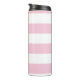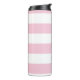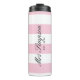 Presente perfeito para uma noiva ou chá de casamento, este tumbler térmico apresenta um padrão de risca horizontal, cor-de-rosa-chico, moderno, com design de tipografia preto elegante. Adicione o futuro sobrenome das noivas e o ano do casamento para uma manutenção única e útil! presente de aniversário ou presente de festa de solteira ideal.