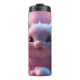 Uma encantadora e encantadora aproximação de um pequeno animal contra um fundo sonhador de matizes roxos e cor-de-rosa macio. A imagem capta detalhes intrincados no pelo do animal e seus olhos brilhantes e brilhantes, dando a ele uma aparência encantadora e carinhosa. A iluminação suave e tranquila acrescenta um toque mágico, fazer a criatura parece fazer parte de um belo sonho rosa