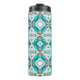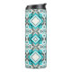 Esse design apresenta um padrão geométrico com forma de diamante repetida com bordas borradas e revestidas radiando para fora. O efeito geral combina simetria, energia e profundidade — um equilíbrio entre o sentimento tribal e a geometria moderna na turquesa, cinza e creme.