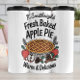 Esta ilustração encantadora apresenta uma torta de maçã recém-assada com uma crosta de latência e duas maçãs vermelhas. Há também pinhas, bastões de canela, e holly. O design é enquadrado pelas frases "Fresca torta de maçã assada" no topo e "quente e delicioso" no fundo, dando à arte uma sensação muito acolhedora e rústica.
