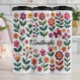 Esta ilustração apresenta um padrão vibrante de flores estilizadas em várias formas e cores. As flores são dispostas para criar uma moldura com um espaço vazio no centro. A arte tem uma textura em forma de papelada com tons ricos de rosa, roxo, amarelo e vermelho, dando a ela uma estética alegre e brincalhona.