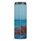 Uma fotografia de um veleiro no horizonte, e ondas caindo na formação de rochas perto da costa. Imagem Copyright ©2018 Kimberly J Tilley.