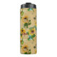 Na moda com vida útil / design de fazenda apresenta girassóis vintage com uma variedade de libélulas sobre fundo marrom claro / bronzeado
