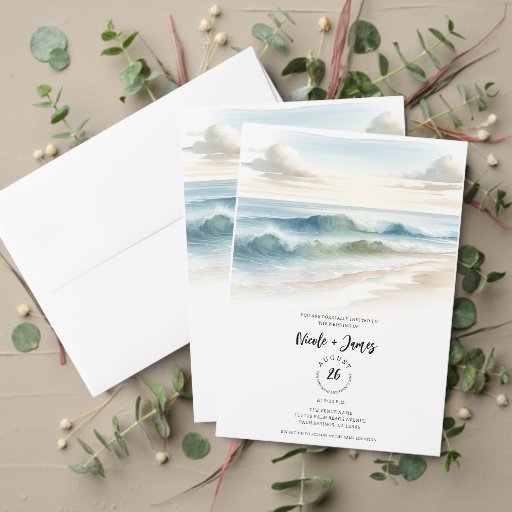 Watercolor Beach Waves Coastal Wedding SuiteCriado por Bloomoura