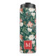 Mantenha sua bebida quente no estilo com nosso tumbler térmico do Winter Floral. O humilde personalizado apresenta seu monograma ou dentro inicial de um quadro retangular vermelho com um padrão de flores poinsettia de cor d'água, flores de marfim, bagas sagradas e folhagem verde esmagadora contra fundo verde.