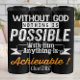 This powerful design proclaims "WITHOUT GOD NOTHING IS POSSIBLE With Him Anything Is Achievable!" "POSSIBLE" is emphasized with a distressed white texture, and "Anything Is Achievable!" flows dynamically in orange script, delivering a strong message of divine empowerment and endless possibilities through faith.