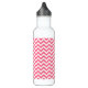 Hip e moderna Trendy Chevron Liberty Water Bottle. Esta garrafa legal apresenta um padrão de zag zag em forma de guincho, cor-de-rosa e branca. Adicione texto a este design para lhe dar um toque pessoal.