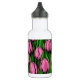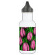 Garrafa Tulipas cor-de-rosa com folhas verdes