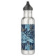 Esta é uma garrafa de água de aço inoxidável da Habatour Creations, adornada com um autêntico design de padrão inspirado na vida marinha, com elementos botânicos e marinhos em legal blues e dourados. Copyright de @Habatour Creations Copiar ou usar sem permissão é ilegal