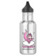 Um unicórnio rosa e bonito numa lua rosa e nuvem branca. Slogan: Você imagina e pode se tornar real. Você pode ter que tentar duro, mas você pode fazer isso acontecer. Boa sorte, pequeno unicórnio. Eu acredito em você!