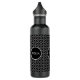Garrafa de água xadrez preta e cinza moderna e elegante com linhas brancas.
