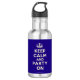 Com base no original Keep Calm e... poster, este creme e azul Mantenha Calma e Festa na Garrafa de Água apresenta uma fonte personalizada que combina com o original.