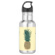 A pintura de abacaxi inteiro maduro com folhas é impressa três vezes em garrafas de água personalizadas. O fundo amarelo claro pode ser personalizado ou excluído.