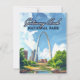 O Arch na Rua Louis reflete sobre a água no Parque Nacional Gateway Arch. Gateway Arch National Park, localizado em Ruas. Louis, Missouri, foi criado como um parque nacional em 2018, embora o icônico Gateway Arch tenha sido concluído em 1965 como um monumento à expansão ocidental. O elemento central do parque é o arco do gateway de aço inoxidável de 630 pés de altura, o mais alto monumento feito pelo homem nos Estados Unidos, oferecendo visões impressionantes do seu pavimento de observação. Visitantes também podem explorar o Museu no Gateway Arch, que mergulha na história da expansão para o oeste, e desfruta de passeios cênicos ao longo da Riverfront do Mississippi.