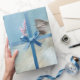 Estes trabalhos de arte de um gatinho branco de Ragdoll que olha acima em um colibri, em um jardim da íris, fazem um papel de envolvimento bonito e original da arte para toda a ocasião. Da coleção dos cães e gato da arte pela canção de natal Cavalaris, este design está igualmente em outros produtos.