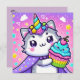 Gatinho Kawaii com Cartão de Nascimento de cupcake