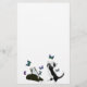 Design original das belas artes dos gatinhos do smoking que jogam com as borboletas pelo ilustrador/desenhista Carolyn McFann de cartões de TPC e do estúdio de ronrom de dois gatos.