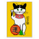 Este cartão mostra um gato afortunado japonês que beckoning no dinheiro. Veste o sino tradicional e o babador vermelho e em seus pés é uma lanterna festiva com o caráter para a "sorte" e um guindaste de papel que representa a paz. À direita, os caráteres leram do "o neko maneki" ("beckoning o gato ").