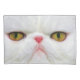 Animais de estimação engraçados. Gato branco com olhos amarelos.