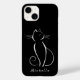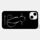 Gato branco minimalista em um caso preto no iPhone 14. Personalize esta capa de telefone elegante com o seu nome.