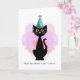 Gato sarcástico com festa que envia desejos puros de um aniversário maravilhoso para a família e amigos.