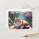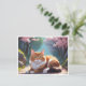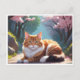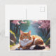 Gato com cartão postal da árvore Sakura