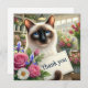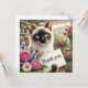 "Expresse sua gratidão de uma forma encantadora com este Gato com Cartões de agradecimentos Flor. Apresentando um gato siamês bonito segurando um belo buquê de flores, este charmoso design adiciona um toque de calor e gentileza aos seus obrigados. Perfeito por enviar apreciação para qualquer ocasião, pessoal ou profissional."
