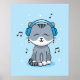 Gato com Poster de Fones de ouvido de (16x20)