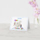 Personalize um presente feito à mão com este cartão de gato colorido. A frente tem um gato branco com suprimentos de arte e artesanato, o dentro tem placas de tinta azul. Mude a saudação com o modelo que eu forneci na frente. O dentro é intencionalmente vazio deixado e pode ser personalizado antes de você comprar ou deixar vazio para sua nota manuscrita pessoal. Se você gosta do que você vê, mas não vê o que você quer, eu posso editar minhas designs para impressão nos itens que você precisa. Para problemas de pedidos e envio, entre em contato com o Suporte ao cliente da Zazzle via https://goo.gl/nCgptf