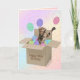 Gato bengala em caixa de cartão genérica com balões e confete para 45 anos