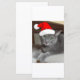 Gato russo cinza azul lindo vestindo o Santa Hat