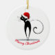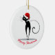 Enfeites de natal mostrado em forma redonda com um impressão de gato de papai noel de feriado bonito. Personalize este item ou comprar como está.