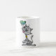 Uma design linda de um gato sentado olhando para cima de uma borboleta que está voando bem acima do nariz. O gato é cinza e tem a língua rosa para fora e parece muito feliz com o mundo. A borboleta é adorável e voa logo acima do gato. Este gato e uma design de borboleta parecem excelentes nesta caneca. Perfeito para si mesmo ou como presente