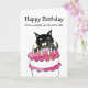 Gato malvado com cartão de aniversário de bolo