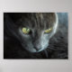 GATO PRETO COM OLHOS VERDES FOTOGRÁFICO POSTER EM PRETO E BRANCO