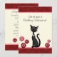 Gato de gueta preto e branco personalizado e Flores Vermelhas e Rosa Convite para o Aniversário para raparigas. Alguns gráficos por artwork©delightful-doodles.com
