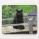 Este bocal mostra um gato preto sentado ao lado de uma lanterna sobre uma ponte de madeira rústica cercada por plantas verdes e flores. Blackie, o gato, sai para esta ponte todas as manhãs e observa os lagartos e outras criaturas tocando embaixo dele.