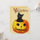 Cartão postal Vintage Ellen Clapsaddle Halloween, da série 1237, mostrando um gato muito bonito sentado numa abóbora. Reimpresso neste Convite para Festas de Halloween.