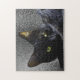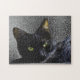 Gato Preto com Quebra-cabeça de Padrões de Cinza