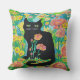 Gato Preto em Almofada de Lançamento de Flores Dec