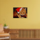 Poster com a foto de um gato cansado e rabugento em um chapéu vermelho de Natal.