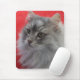 Mousepad com imagem do gato Siberian de cabelos compridos do gato malhado de prata com fundo vermelho.